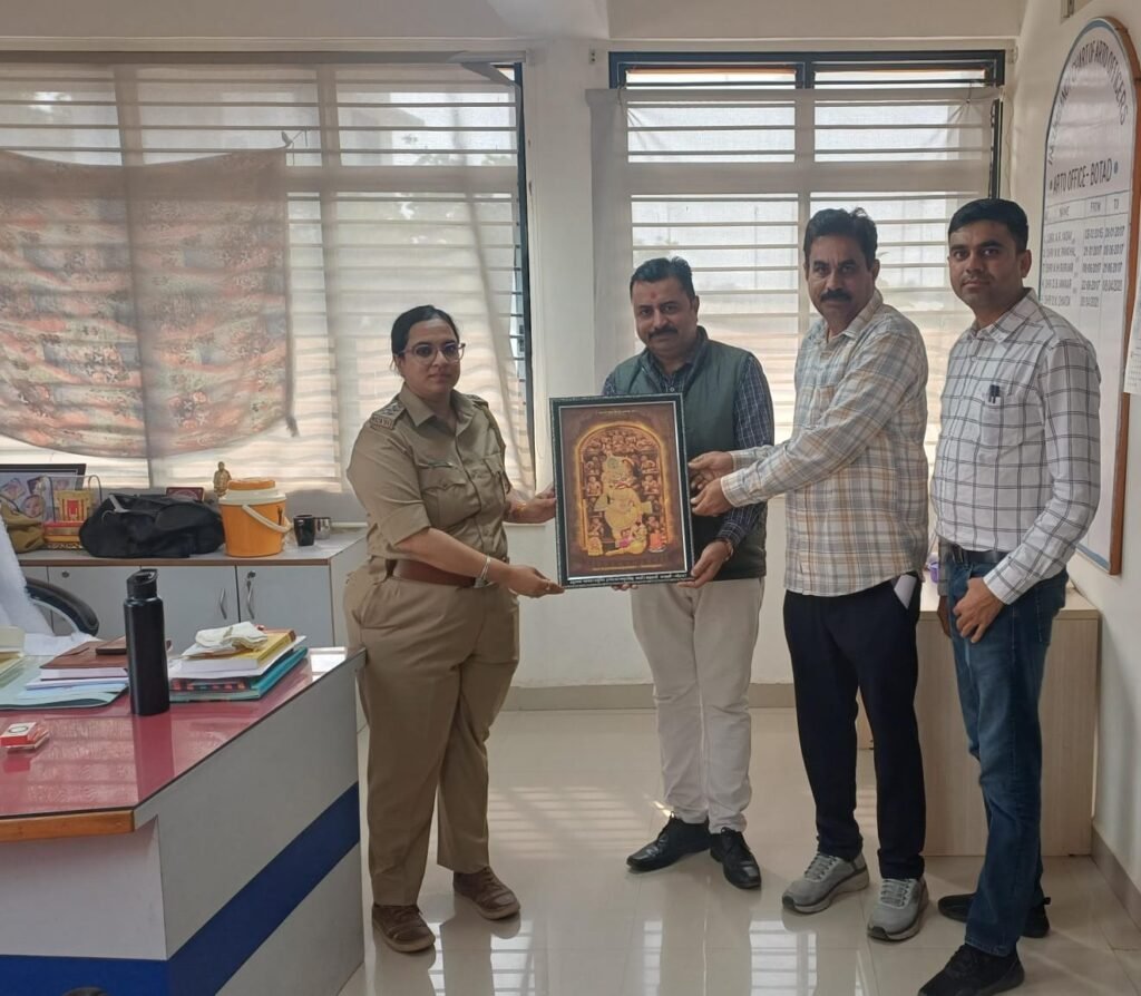 અહેવાલ. રિપોર્ટર જયદૅવ વી મંડીર – બોટાદ જિલ્લા ટુર્સ એન્ડ ટ્રાવેલ્સ એસોસિએશનના પ્રમુખ અને રઘુવીર ટ્રાવેલ્સ બોટાદ સિટી બસના સંચાલક હકુભાઈ ખાચર અને સહકારી અગ્રણી મયુરધ્વજસિંહ ભાટીએ,બોટાદના નવનિયુક્ત આર ટીઓ ઓફિસર આર.પી.દાણી મેડમ ની શુભેચ્છા મુલાકાત લીધી હતી.અને ખૂબ ખૂબ શુભેચ્છાઓ સાથે અભિનંદન પાઠવી શ્રી કષ્ટભંજનદેવદાદાની ફોટોમૂર્તિ અર્પણ કરી હતી.